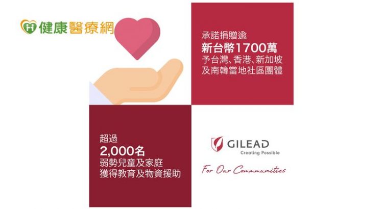 吉立亞醫藥為協助亞洲受新冠肺炎(Coronavirus Disease 2019,COVID-19)重創的社區包括台灣、香港、新加坡及南韓等地,今日宣佈將提供超過1,700萬新台幣的資金和資源予有需要的社區團體。此次捐款是吉立亞醫藥於亞洲發動的企業社會責任計畫—「Creating Possible For Our Communities」的其中一環。