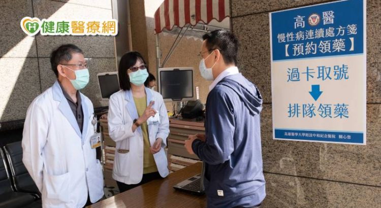 高醫附設中和紀念醫院藥學部主任王雅玲表示,病友可在領藥當日或之前,透過網路或APP操作高醫【慢性病連續處方箋領藥預約系統】預約領藥,預約完成後,再到醫院啟川大樓門口即可領藥,無需再進到醫院,以節省領藥時間與減少出入醫院的次數。而院內原有的慢性病連續處方箋領藥仍照常運作。